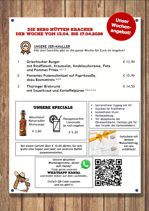 Wochenkarte Berg Hütte vom 13.04. bis 17.04.2026